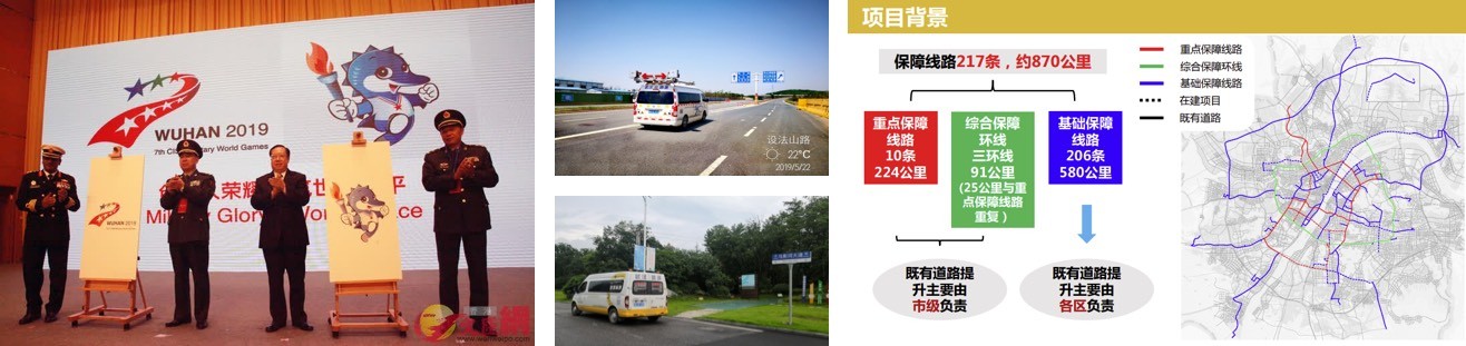 第七屆世界軍人運(yùn)動會于2019年在武漢舉行,城建委負(fù)責(zé)武漢軍運(yùn)會保障線路路面整治相關(guān)導(dǎo)則和方案編制工作。路源檢測公司承擔(dān)10條重點(diǎn)保障線路、三環(huán)線綜合保障線路、基礎(chǔ)保障線路路面檢測及附屬設(shè)施調(diào)查服務(wù),合計單車道里程超過2000公里。
