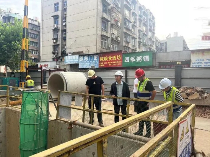 ? ? 紅巷(都府堤一解放路)、秦簡街(友誼大道一沙湖)排水工程值班負責人進行節(jié)日期間的安全巡查工作,要求施工現(xiàn)場頂管段工作前進行安全交底、氣體檢測,明挖段鋼板樁施工前做好地下管線調查工作。