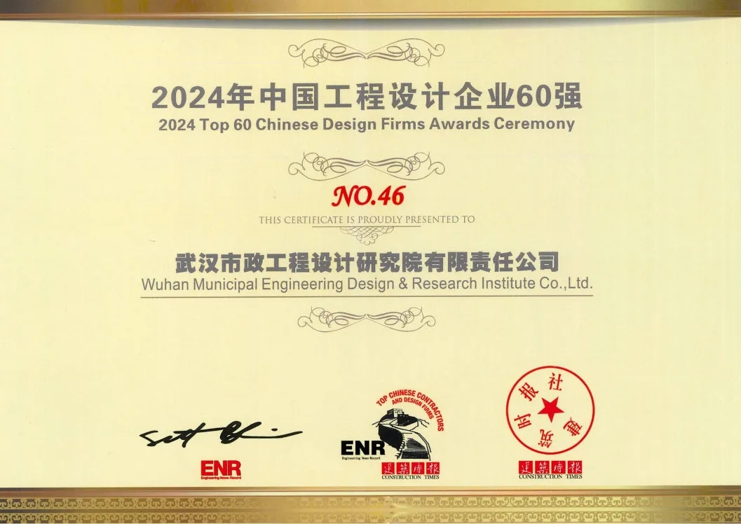 ? ? 近日,《建筑時(shí)報(bào)》和美國《工程新聞紀(jì)錄》(ENR)共同發(fā)布2024年度“中國承包商80強(qiáng)和工程設(shè)計(jì)企業(yè)60強(qiáng)”排名,武漢市政院榮膺“中國工程設(shè)計(jì)企業(yè)60強(qiáng)”稱號(hào),排名第46位,位居武漢市屬設(shè)計(jì)企業(yè)第一名。