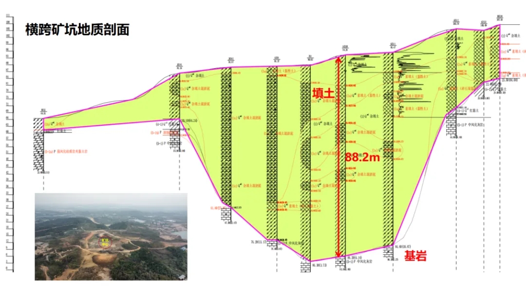 在武漢市江夏區(qū)鴿子山片區(qū)的云景山項目現(xiàn)場,武漢市政院勘察設(shè)計團隊面對“超深礦坑填方+巖溶”這一工程地質(zhì)難題,通過勘察技術(shù)集成與勘探工藝革新,成功突破傳統(tǒng)勘察手段的技術(shù)瓶頸,不僅為這片因歷史開采形成的廢棄礦坑掃清了安全再利用的地質(zhì)障礙,更打造了復(fù)雜地質(zhì)條件下工程勘察的“武漢標準”,為行業(yè)提供了可復(fù)制、可推廣的技術(shù)范式。