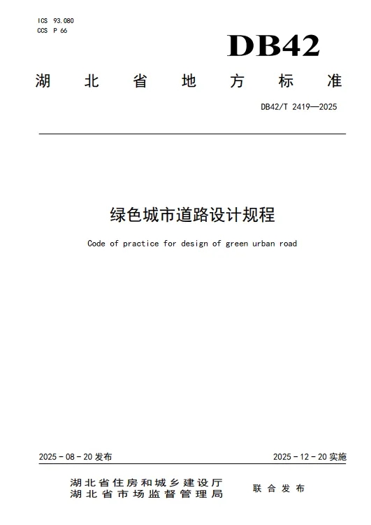 ? ? 近日,由武漢市政院主持編制的湖北省《綠色城市道路設(shè)計(jì)規(guī)程》(DB42/T 2419-2025)地方標(biāo)準(zhǔn),經(jīng)湖北省住房和城鄉(xiāng)建設(shè)廳、湖北省市場(chǎng)監(jiān)督管理局聯(lián)合批準(zhǔn)發(fā)布,將于2025年12月20日起正式實(shí)施。該標(biāo)準(zhǔn)是公司聯(lián)合行業(yè)多家單位,歷時(shí)三年深入調(diào)研國內(nèi)典型城市綠色道路建設(shè)實(shí)踐,系統(tǒng)總結(jié)湖北省實(shí)踐經(jīng)驗(yàn)的重要成果。