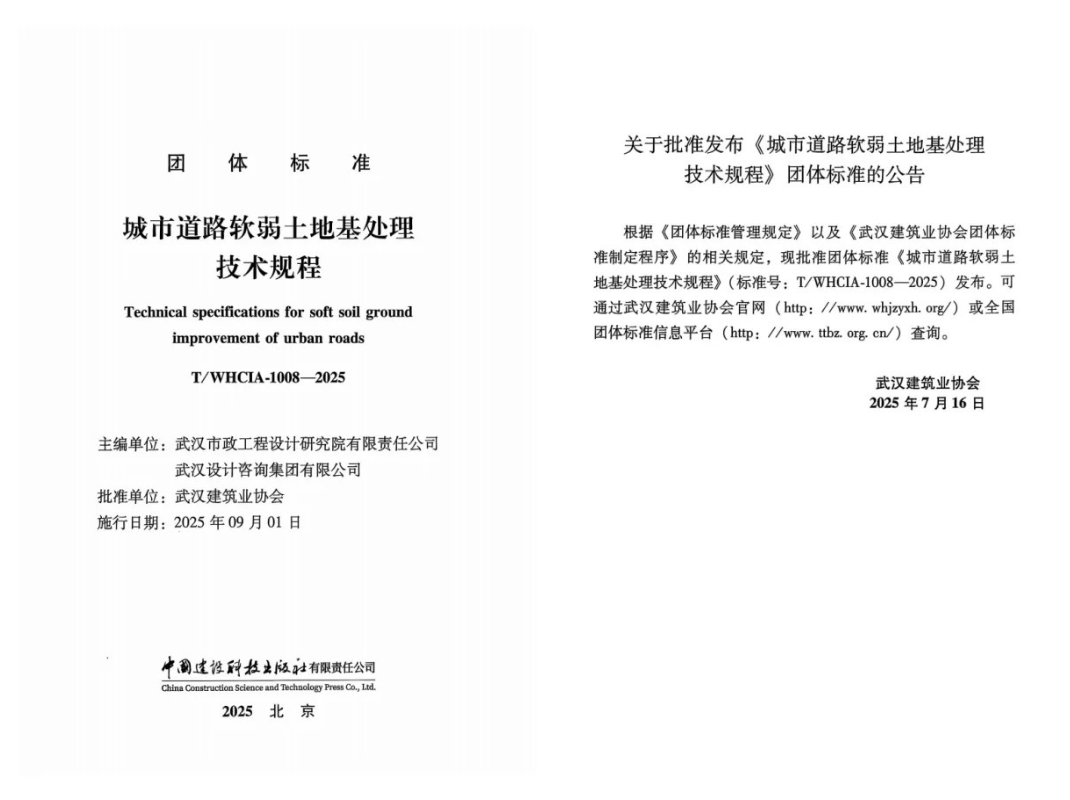 武漢市政院與武漢設(shè)計咨詢集團(tuán)聯(lián)合主編的團(tuán)體標(biāo)準(zhǔn)《城市道路軟弱土地基處理技術(shù)規(guī)程》,已由武漢建筑業(yè)協(xié)會批準(zhǔn)發(fā)布。該規(guī)程是國內(nèi)首部專門針對城市道路軟弱土地基處理的技術(shù)標(biāo)準(zhǔn),有效解決了現(xiàn)行建筑與公路規(guī)范在市政道路工程中存在的諸多不明確、不統(tǒng)一的應(yīng)用問題。其內(nèi)容系統(tǒng)全面,兼具實用性與先進(jìn)性,既體現(xiàn)了市政行業(yè)特色,又契合城市道路實際建設(shè)需求,對湖北省內(nèi)城市道路軟弱土地基處理的設(shè)計、施工、關(guān)鍵技術(shù)方法及檢測監(jiān)測等方面提供了權(quán)威依據(jù)與科學(xué)指導(dǎo)。該《規(guī)程》整體達(dá)到國內(nèi)先進(jìn)水平,在行業(yè)與省內(nèi)居于領(lǐng)先地位。它的發(fā)布進(jìn)一步鞏固了武漢市政院在市政巖土工程領(lǐng)域的技術(shù)優(yōu)勢,顯著提升了公司的行業(yè)影響力與核心競爭力。