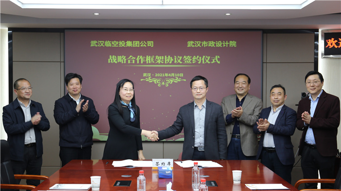 2021年4月10日,武漢市政設(shè)計院與武漢臨空經(jīng)濟(jì)區(qū)建設(shè)投資開發(fā)集團(tuán)有限公司在漢簽署戰(zhàn)略合作協(xié)議,雙方將依托各自的技術(shù)、資源等優(yōu)勢,在臨空經(jīng)濟(jì)區(qū)內(nèi)的市政項目整體策劃研究、環(huán)境治理等方面開展深度合作。武漢市政設(shè)計院董事長武興治、總經(jīng)理姚華、紀(jì)委書記談逢陽、副總經(jīng)理陳建斌,武漢臨空投集團(tuán)公司黨委書記、總經(jīng)理黃峰,副總經(jīng)理朱年正,副總工程師王瑩,以及雙方相關(guān)人員出席簽約儀式。