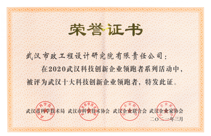 2021年4月15日,武漢創(chuàng)新與創(chuàng)業(yè)高峰論壇暨武漢科技創(chuàng)新企業(yè)領(lǐng)跑者系列活動頒獎盛典在武漢電視臺演播廳隆重舉行,武漢市政設(shè)計(jì)院榮膺“2020年度武漢十大科技創(chuàng)新企業(yè)領(lǐng)跑者”稱號,公司副總經(jīng)理周俊作為嘉賓上臺領(lǐng)獎。