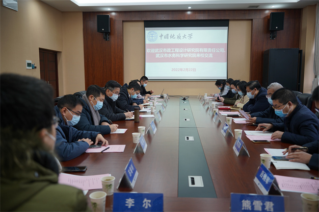 2022年2月22日,公司副總經(jīng)理、總工程師周俊,副總經(jīng)理饒世雄攜公司水環(huán)境研究院博士團(tuán)隊(duì)前往中國地質(zhì)大學(xué)(武漢),就污水處理與資源化、水環(huán)境治理項(xiàng)目與中國地質(zhì)大學(xué)(武漢)、武漢市水務(wù)科學(xué)研究院的院士、專家團(tuán)隊(duì)開展合作交流。中國地質(zhì)大學(xué)(武漢)校長王焰新院士,武漢市水務(wù)科學(xué)研究院院長葉輝、副院長李敏,及三方相關(guān)領(lǐng)導(dǎo)和技術(shù)專家出席會(huì)議。中國地質(zhì)大學(xué)(武漢)校友與社會(huì)合作處處長陳華榮主持會(huì)議。