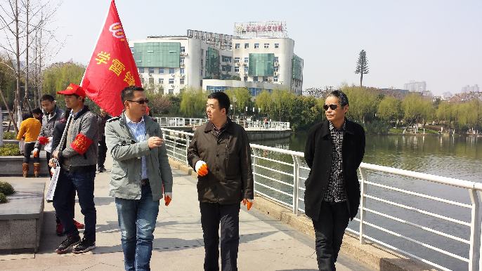 ??? 隨后,黨員們跟隨著區(qū)湖泊管理所的專家來到了公司附近的后襄河公園,開展了湖泊清潔活動。大家沿著湖邊行走,撿拾起路邊、湖邊的垃圾。湖泊管理所的專家以后襄河公園的湖泊現(xiàn)狀為例,講解了湖泊保護(hù)的常識。